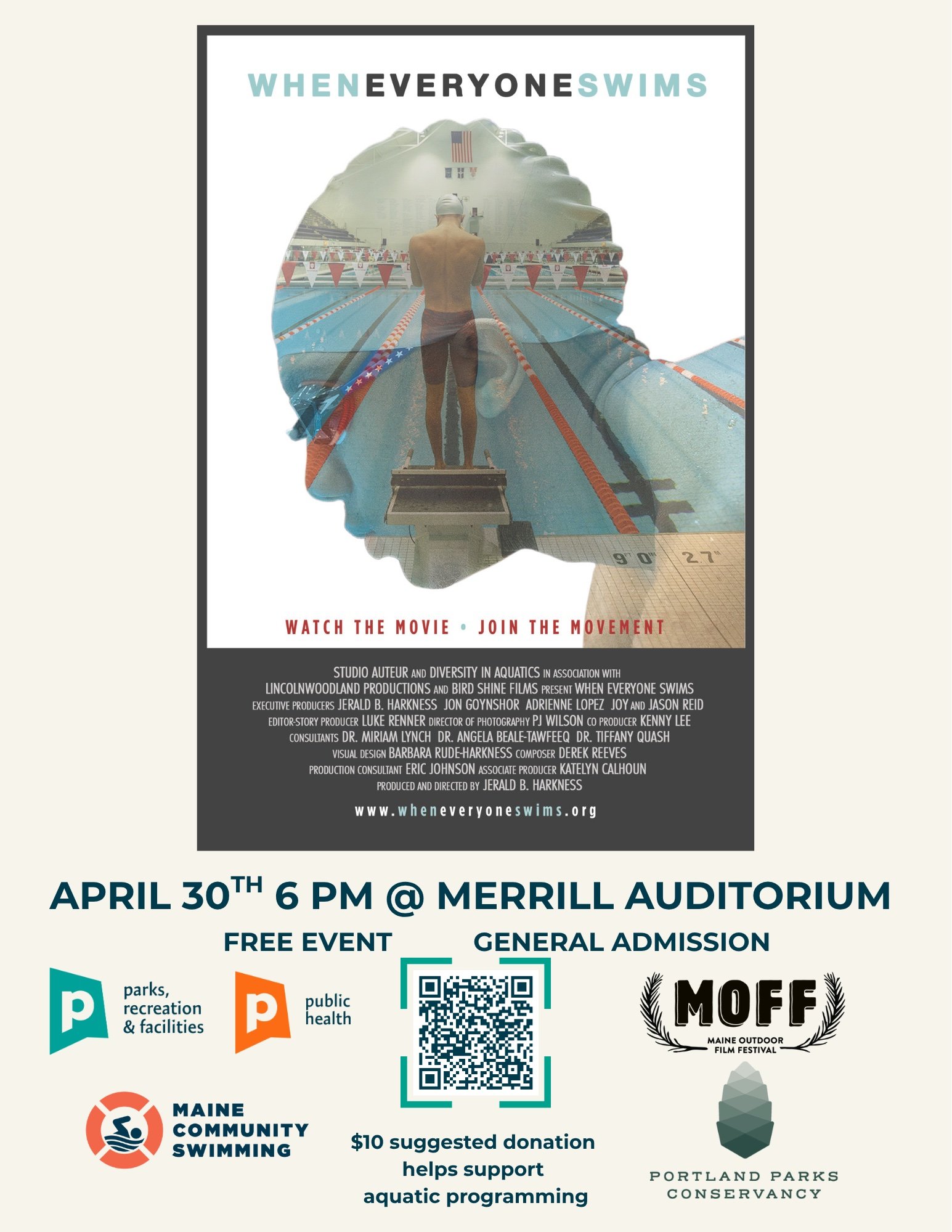 Tickets: $10 suggested donation at the door. Your contribution directly supports local aquatic programming through Maine Community Swimming.